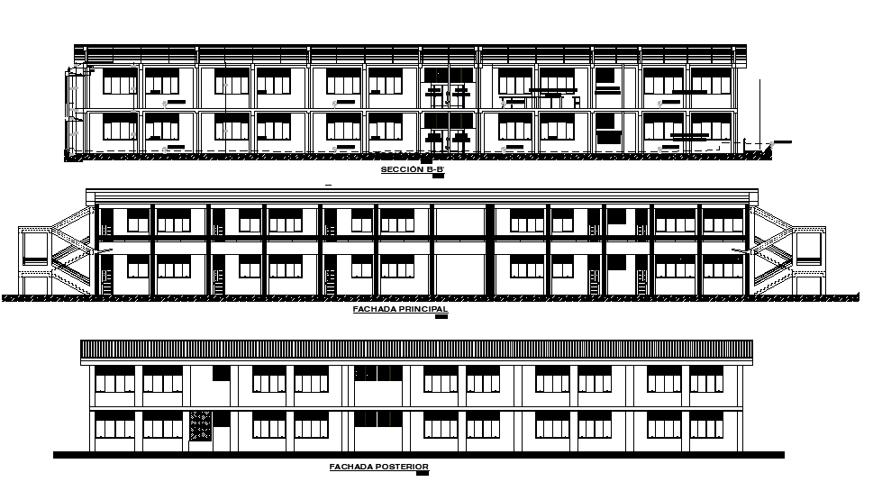 An elevation view of 22x11m hotel plan is given in this Autocad drawing file. Download now.