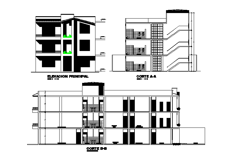 An elevation and section view of 30x14 communal centre building is given in this Autocad drawing file. This is G+2 communal building. In this plan, director room, meeting hall, the dining area, reception, water closet for male & female, and other details are given in this drawing model. For more details download the Autocad file. Thank you for downloading the Autocad files and other CAD program files from our website.