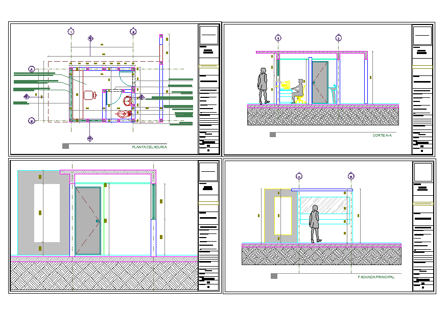 Small Office Reception Area design, masonry wall - smooth plaster - stucco - painting weather-resistant white, Vinyl floors with hot-welded joints. - blue color, plan lay-out, elevation design, section design.