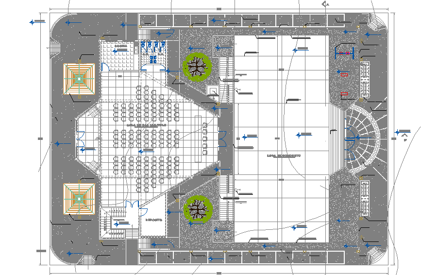 43x32m multifunctional hall plan is given this Autocad drawing file. Download now.