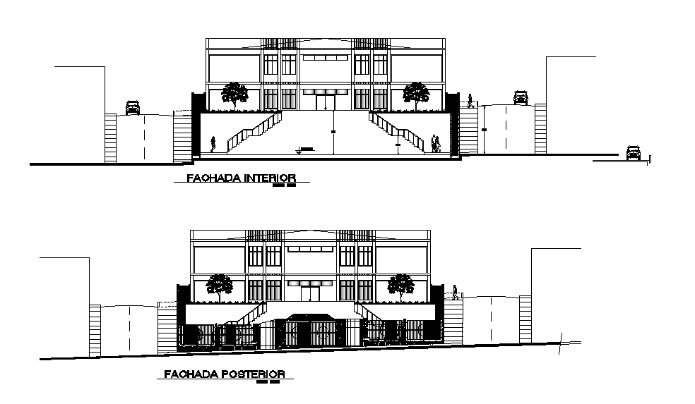 An elevation view of 43x32m multifunctional hall building is given this Autocad drawing file. Download now.