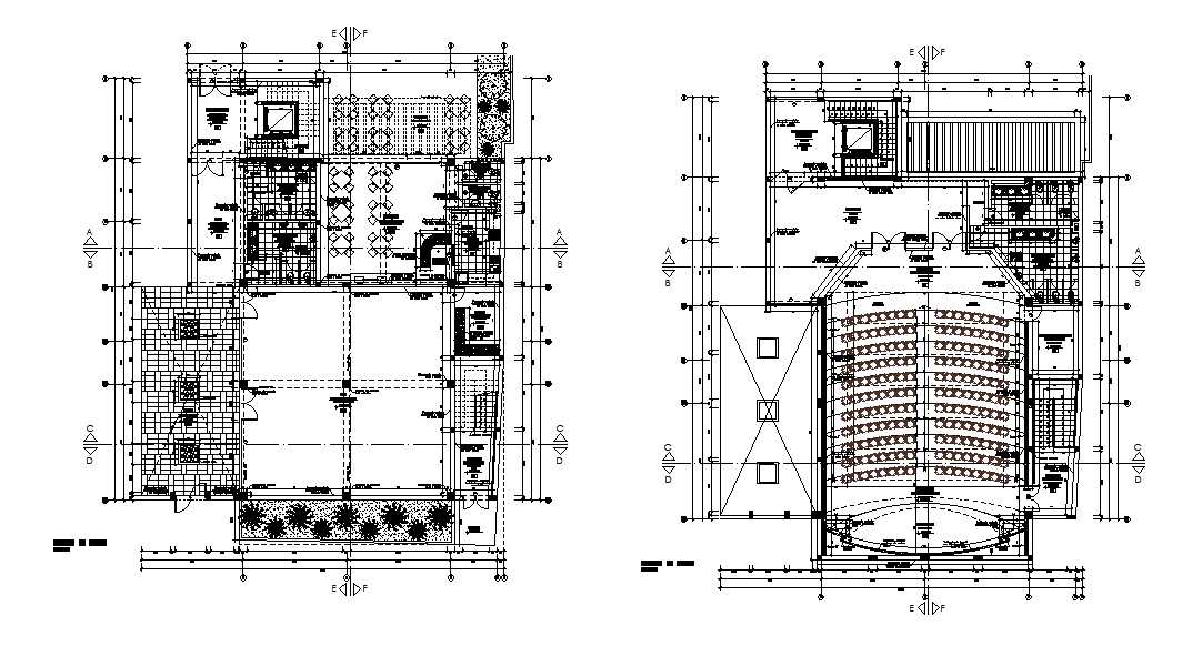 Auditorium Building ground Floor And First Floor Plan CAD Drawing Download DWG File