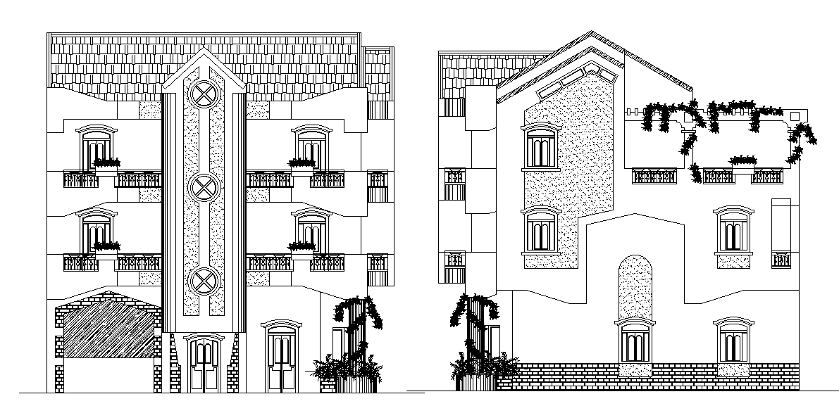 Bungalow elevation detail defined in this cad drawing file. Download this 2d AutoCAD drawing file.