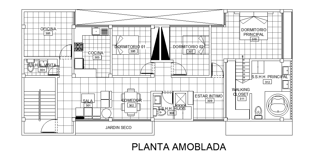 Bungalow floor plan detail defined in this AutoCAD drawing file. Download 2d autocad drawing file.