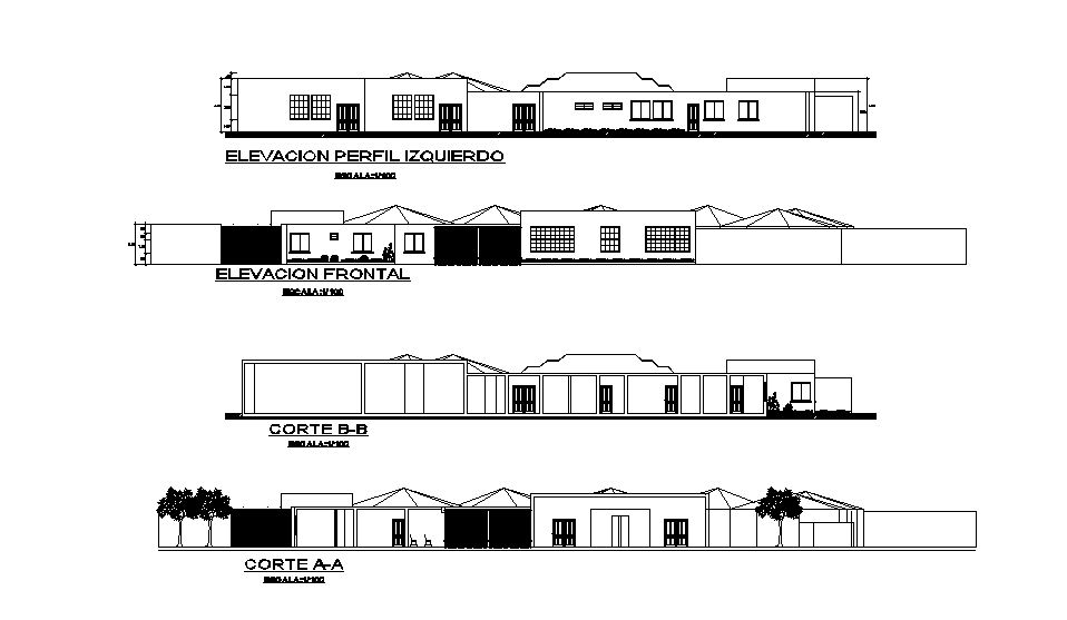School elevation design separated in this AutoCAD file. Download this 2d AutoCAD drawing file.
