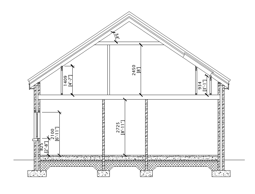 Bungalow sectional detail specified in this cad drawing file. Download the AutoCAD drawing file.
