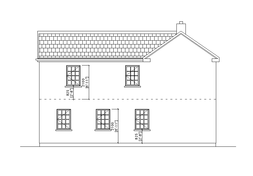 Bungalow back elevation detail defined in this cad drawing file. Download the AutoCAD drawing file.