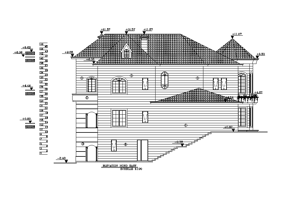 Bungalow side section detail defined in this cad drawing file. this file consists of roof section detail, given with shutter drawing in elevation, door window detail, glass window elevation detail, with dimensions and specifications. this can be used by architects and engineers. Download this 2d AutoCAD drawing file.