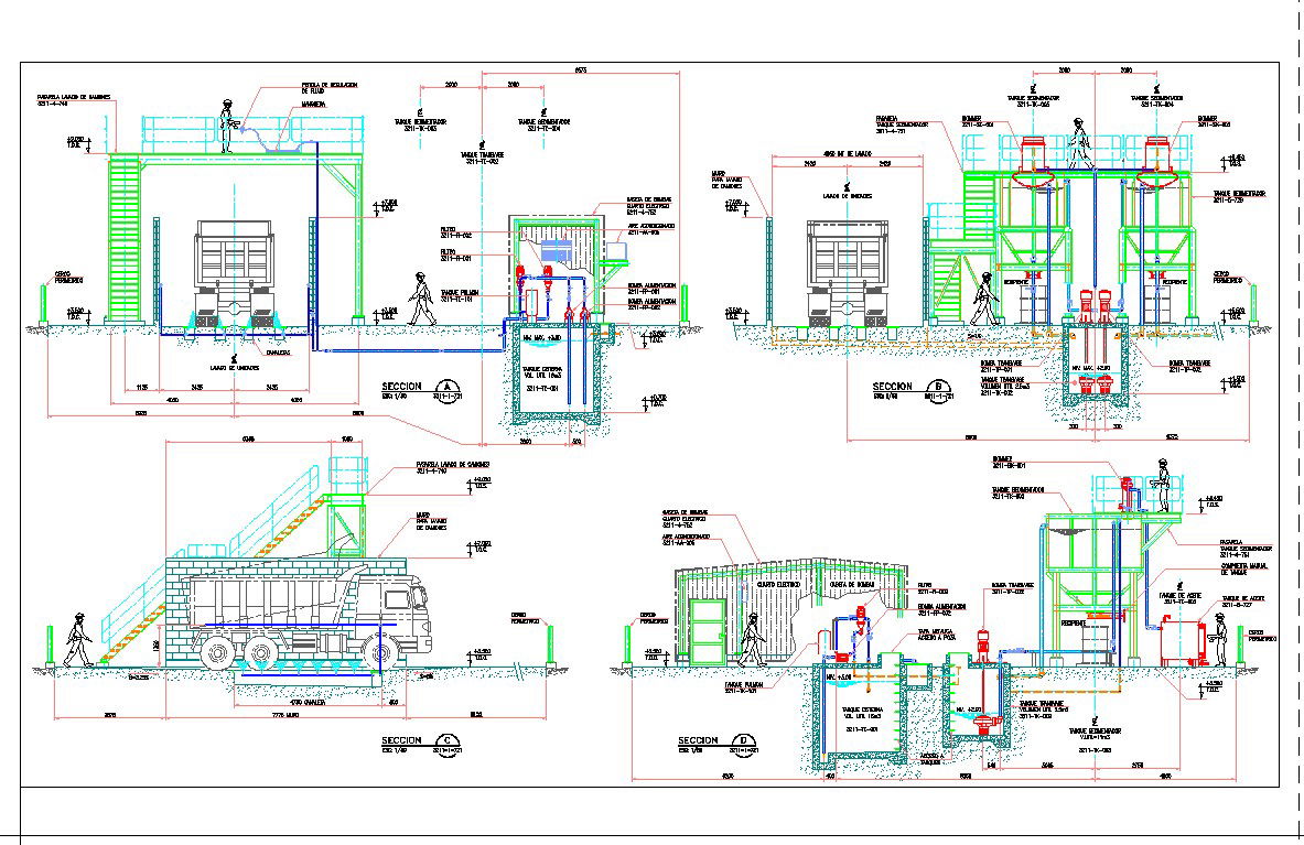 Autometic vehicle wash service stations detail cad drawing include elevations, sections and drawing of working.