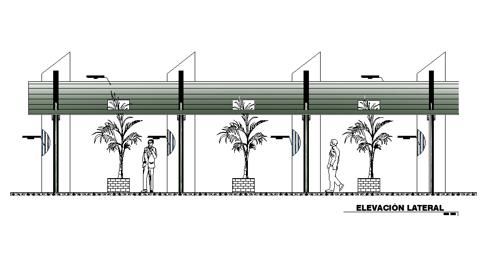 Lateral elevation view of 7x12m walkway is given in this Autocad drawing file. Download now.