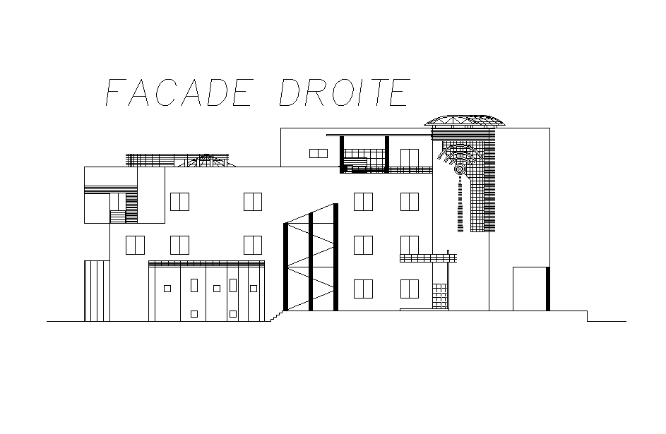 Back side elevation view of 35x33m administration seiege telecommunication office building is given in this Autocad drawing file.