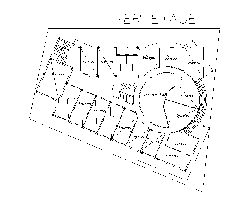 35x33m administration seiege telecommunication first floor office plan is given in this Autocad drawing file. This is G+3 office building. In this, office, conference room, bureau, reception hall, corporate sales agency, and other details are mentioned. For more details download the Autocad drawing file. Thank you for downloading the Autocad file and other CAD program files from our website.
