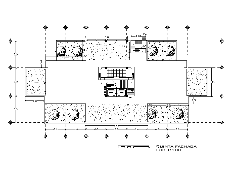 Roof plan of 60x40m architecture office plan is given in this Autocad drawing file. Download now.