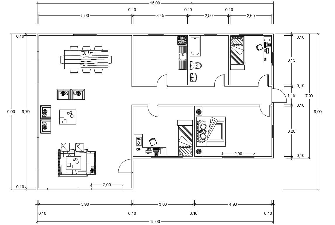 15x10 house plan is given in this Autocad drawing file. Download now.