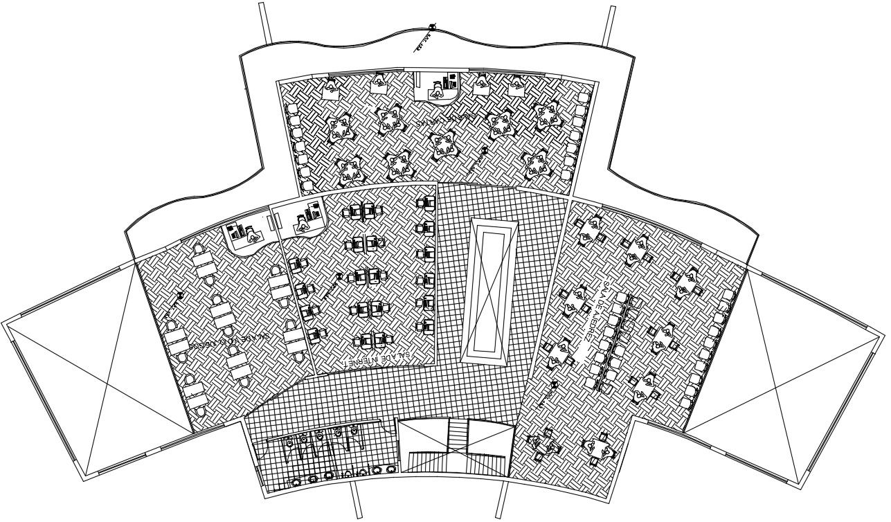 Restaurant floor plan detail separated in this cad drawing file. Download this 2d autocad drawing file.