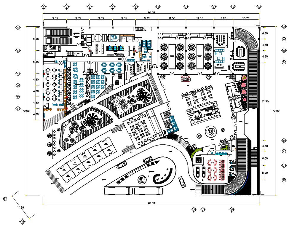 Hotel floor plan detail drawing separated in this AutoCAD file. this file consists of Hotel Design Plan AutoCAD File detail of hotel planning include many rooms, toilets, restaurant, utilities, and services detail given. this can be used by architects and engineers. Download this 2d AutoCAD drawing file.