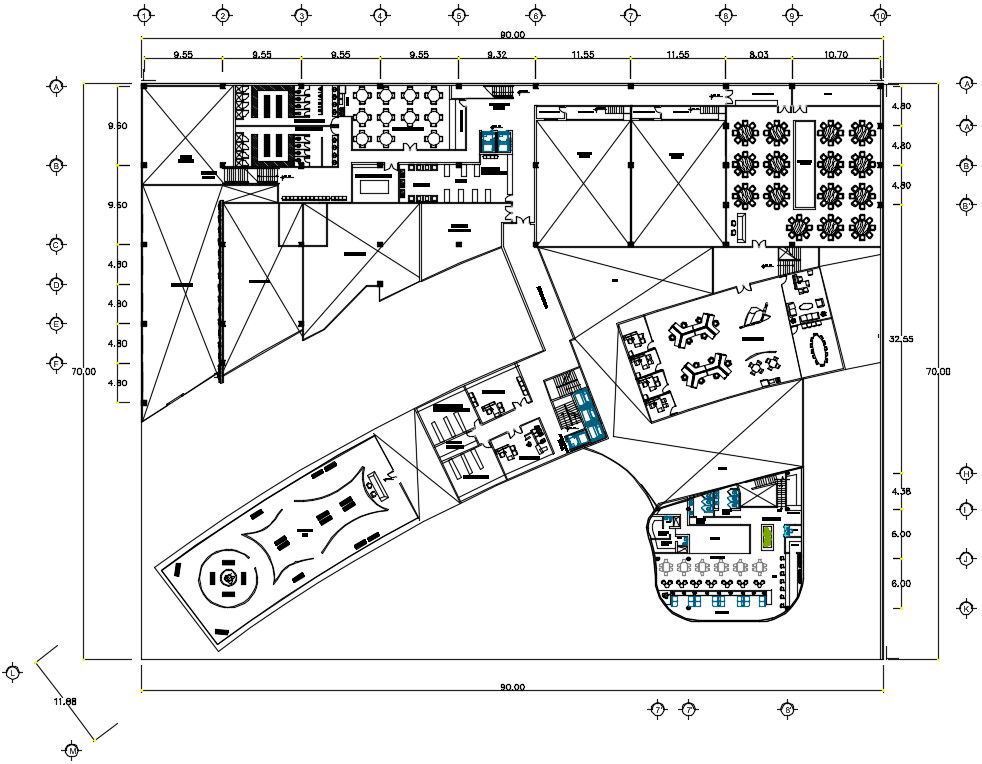 Terrace plan details of the hotel specified in the AutoCAD file. Download this 2d autocad drawing file.