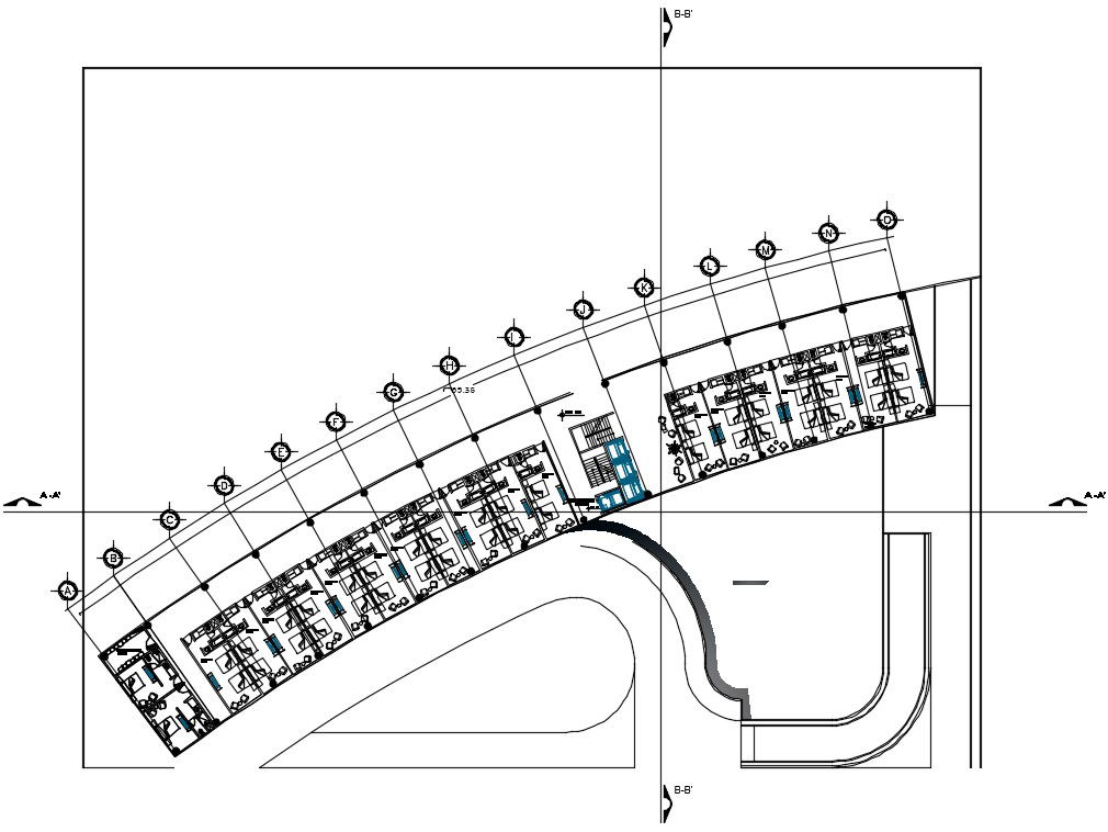 Enlarged office floor plan detail defined in this file. Download this 2d autocad drawing file.