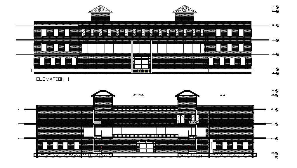 University front elevation detail presented in this drawing. Download this 2d autocad drawing file.