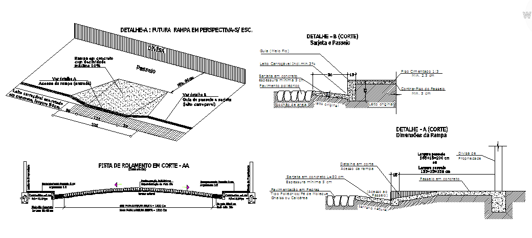 Layers of Road Construction. Concrete gutter L = 50 cm Minimum thickness 5 cm, 800 for gross width = 1200 cm, Bed Car table Incl.min.3%, Floor polyhedral, Concrete walkway etc detail.
