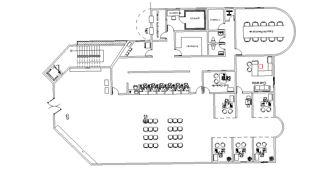 Service center office floor plan provided in this AutoCAD file. this file consists of room blocks, services, and staircase detail drawings presented in this file. this can be used by architects and engineers. Download this 2d AutoCAD drawing file.