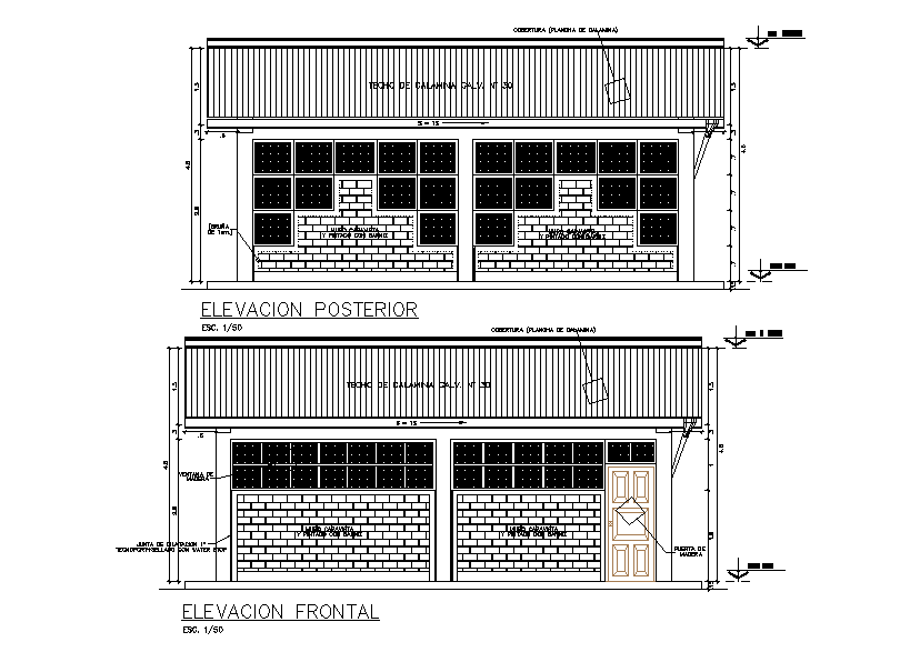 Bungalow elevation detail specified in this cad drawing file. Download this 2d AutoCAD drawing file.
