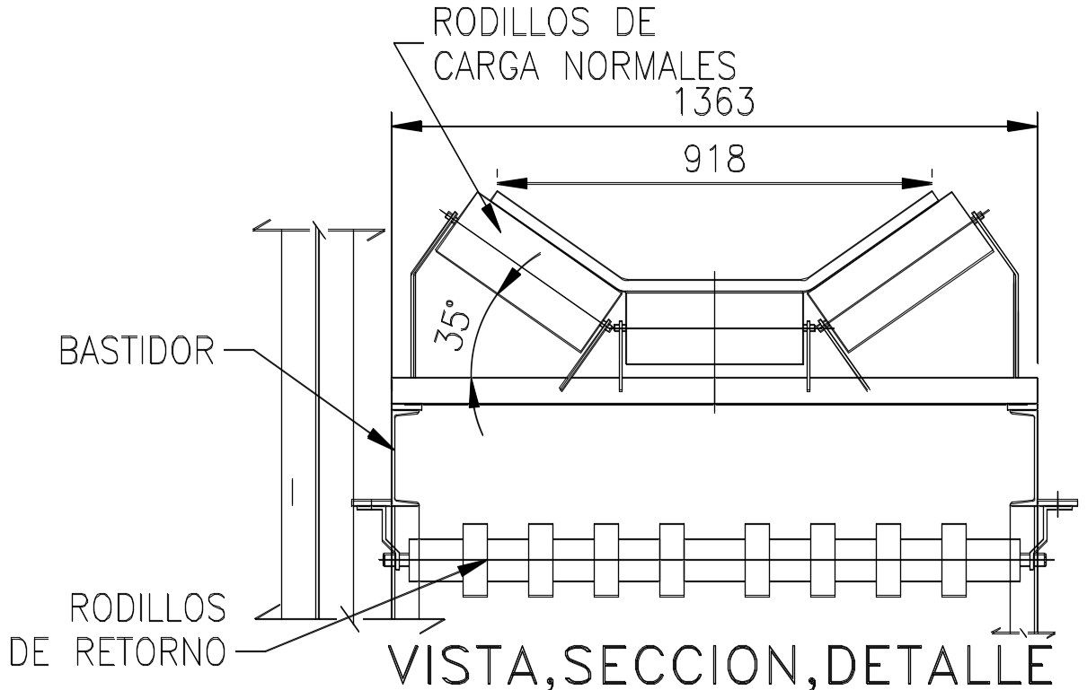 Load roller section view is given in this Autocad drawing file. Detail drawing is given in this model. Frame, normal load rollers, return rollers and other details are specified. For more details download the Autocad file. Thank you for downloading the Autocad file and other CAD program files from our website.