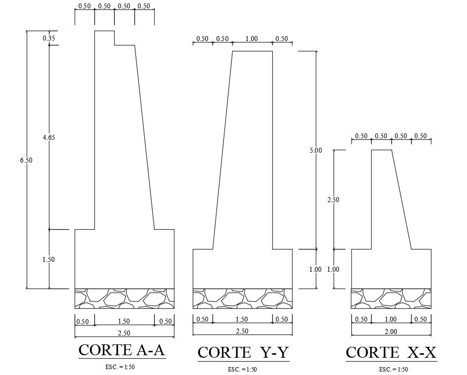 A section view of Canal profile is given in this Autocad drawing file. This is used for water discharge purpose. Foundation, channel bottom, level stretch, grading, and other details are available. For more details download the Autocad file. Thank you for downloading the Autocad file and other CAD program files from our website.
