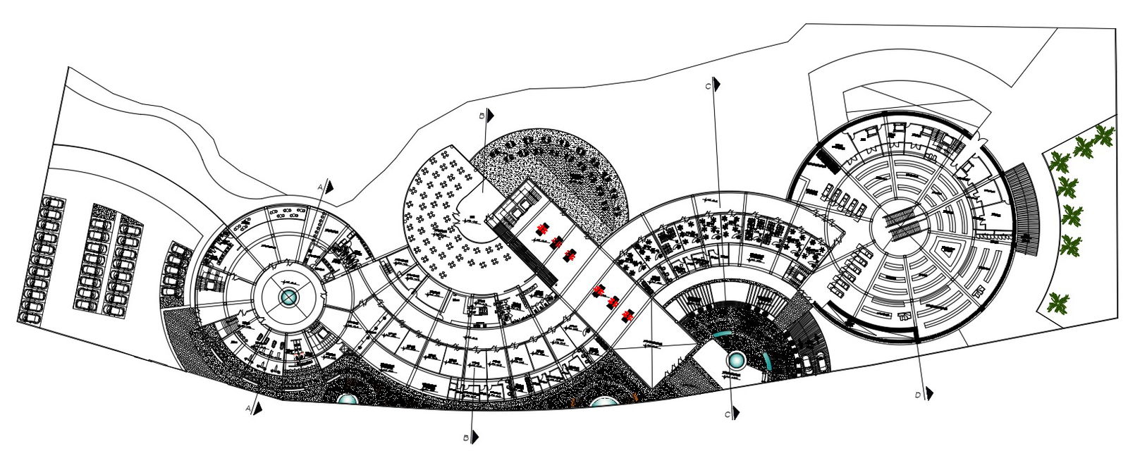 A layout of hotel cum shopping plan is given in this Autocad model. Download now.