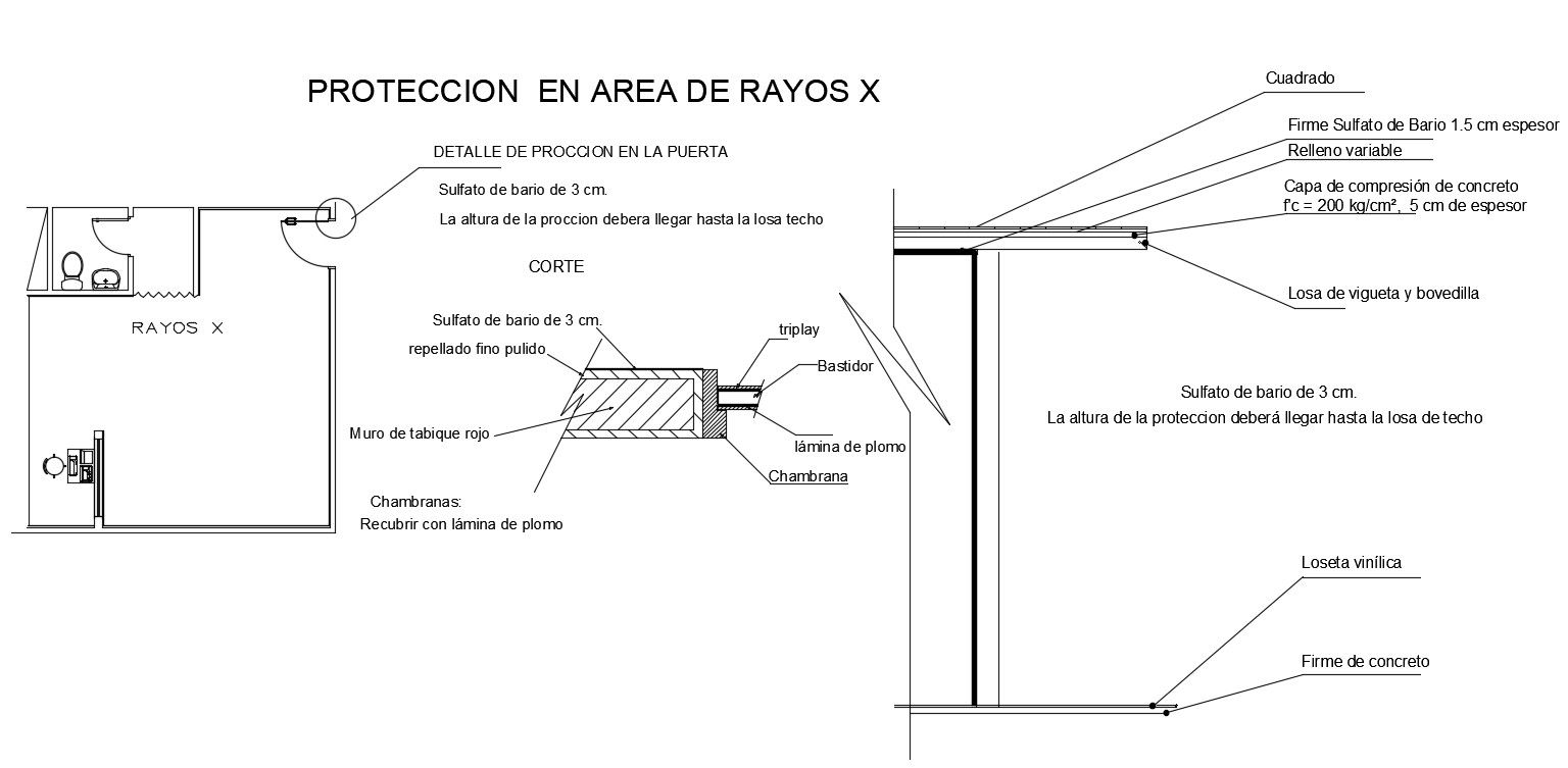 X ray room plan is given in this Autocad drawing file. This is given for hospital plan. Detail of protection on the door, concrete firm, vinyl tile, 3 cm barium sulfate, the height of the protection must reach the ceiling slab and other details are mentioned in this model. For more details download the Autocad file. Thank you for downloading the Autocad file and other CAD program files from our website.