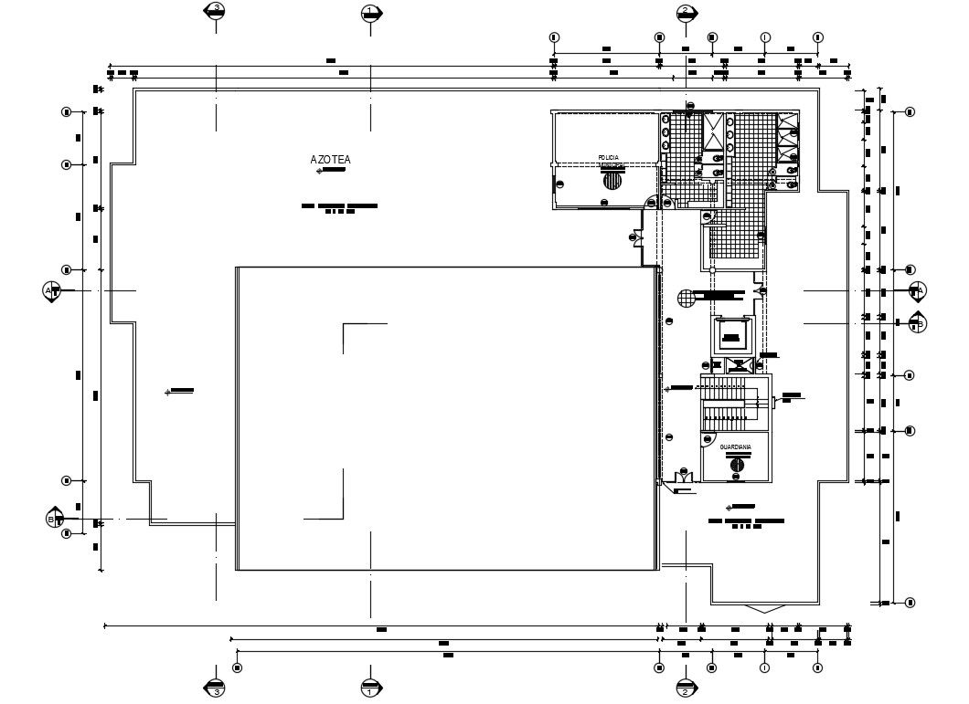 Roof plan of 46x33m food factory plan is given in this Autocad drawing file. This is G+2 food factory building. In this, potatoes & grains, fish chamber, food area, chifleria, dining room, condiments, meats and other details are available. For more details download the Autocad file. Thank you for downloading the Autocad file and other CAD program files from our website.
