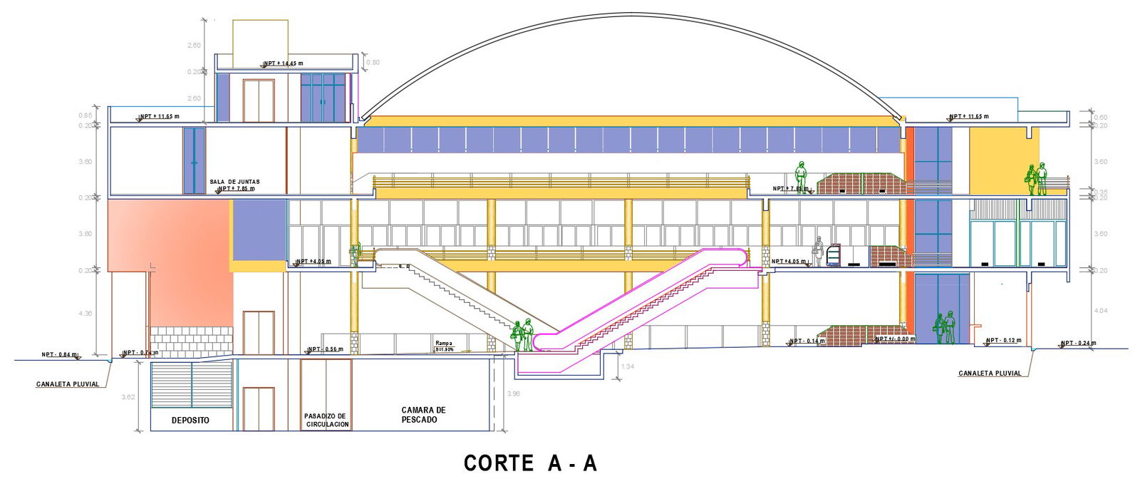 A section view of 46x33m food factory building is given in this Autocad drawing file. This is G+2 food factory building. In this, potatoes & grains, fish chamber, food area, chifleria, dining room, condiments, meats and other details are available. For more details download the Autocad file. Thank you for downloading the Autocad file and other CAD program files from our website.