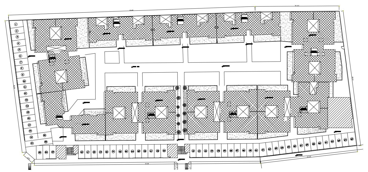 A site layout of 120x50m apartment plan is given in this Autocad drawing file. Download now.