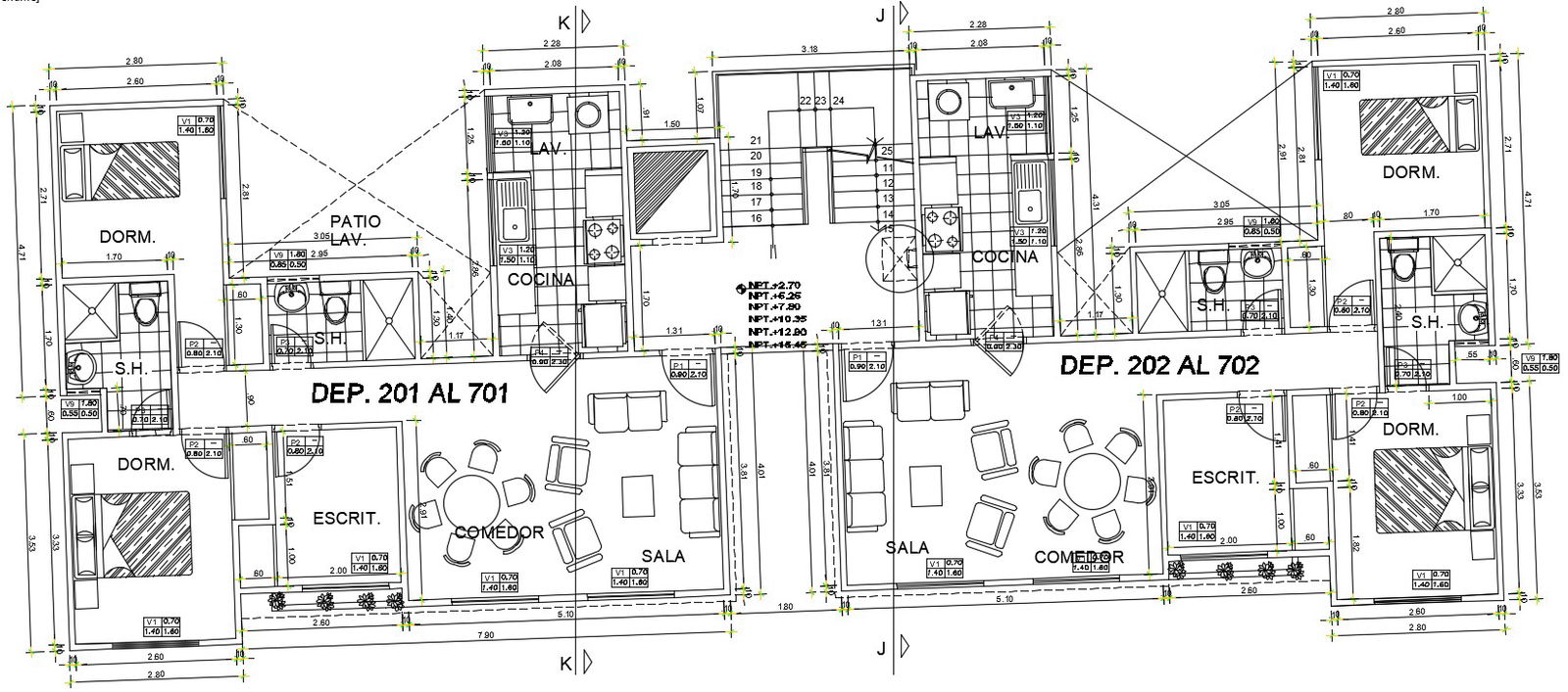 Separate block of 24x16m apartment plans are given in this Autocad drawing file. This is G+6 apartment building. In each floor, two houses are available. These houses are consists of kitchen, dining area, master bedroom, guest room, living hall and common toilet is available. For more details download the Autocad file. Thank you for downloading the Autocad file and other CAD program files from our website.