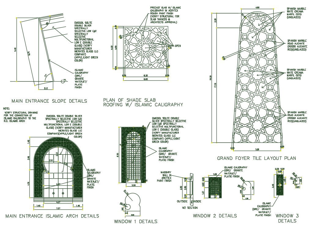 Grand foyer tile layout detail drawing separated in this AutoCAD file. Download this 2d AutoCAD drawing file.
