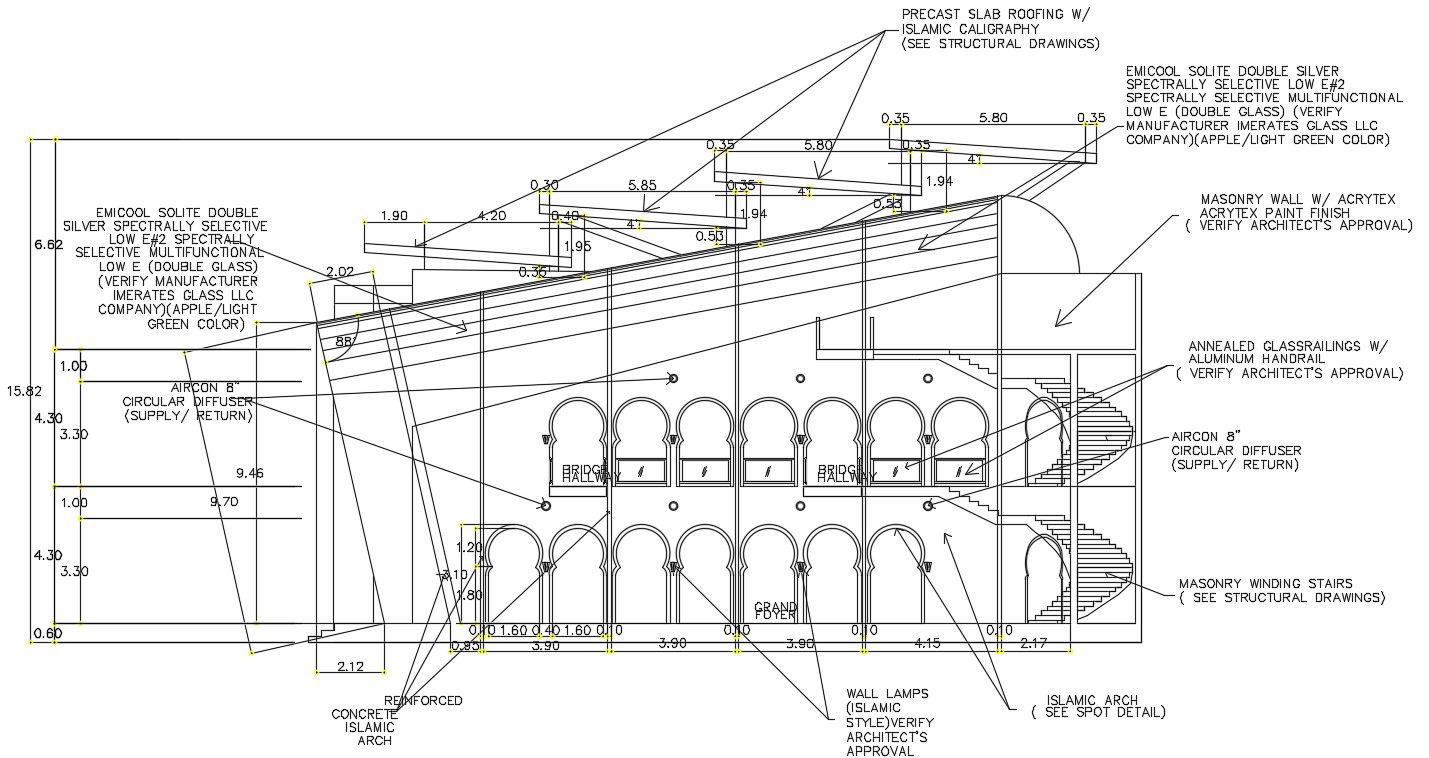 Section detail of a mosque detail separated in this drawing. this file consists of the back elevation and which is with large glass window detail with dimensions and specifications. this can be used by architects and engineers. Thank you for downloading the AutoCAD file and other CAD programs from our website.