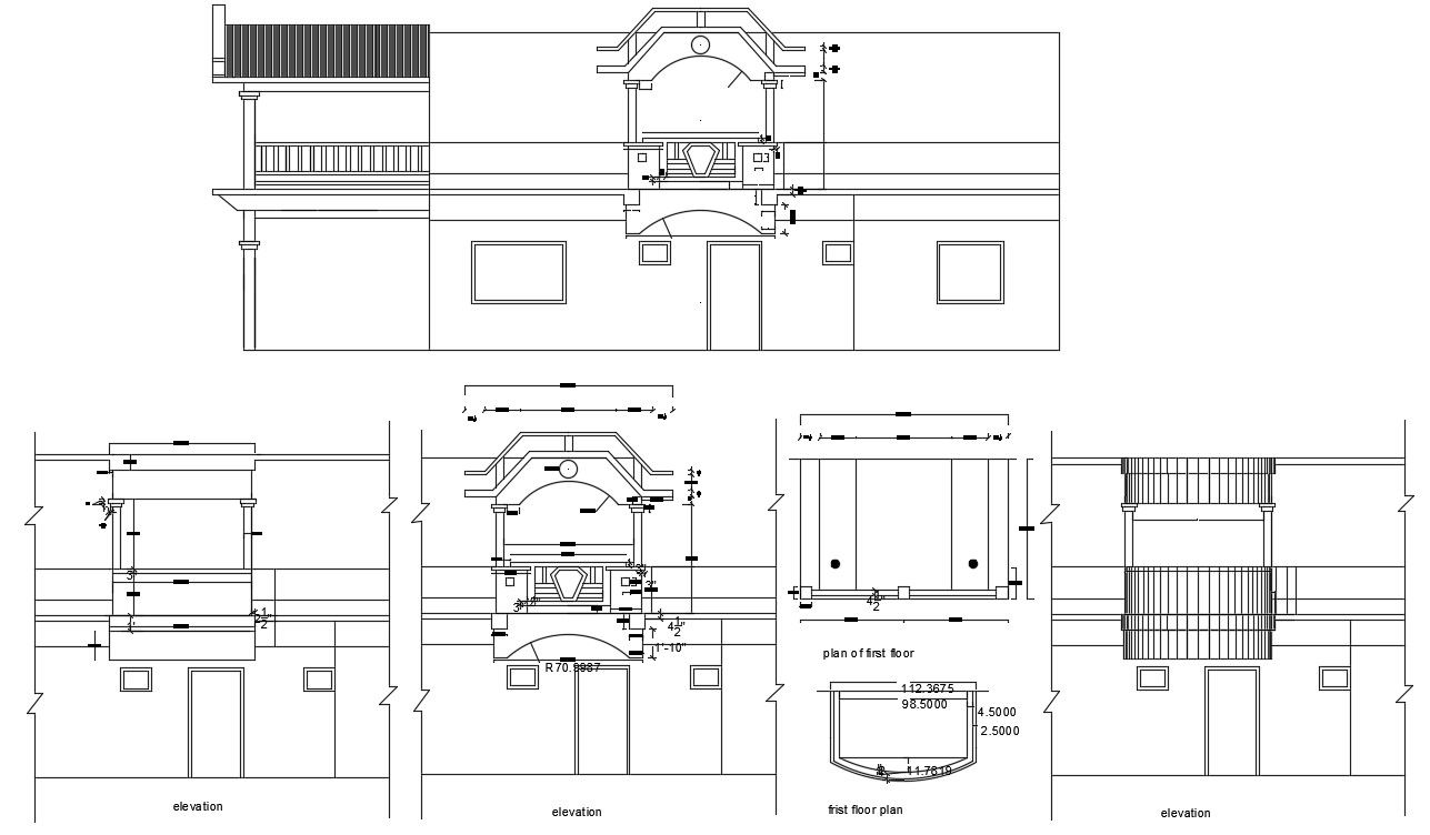 Bungalow elevation detail presented in this file. Download this 2d AutoCAD drawing file.