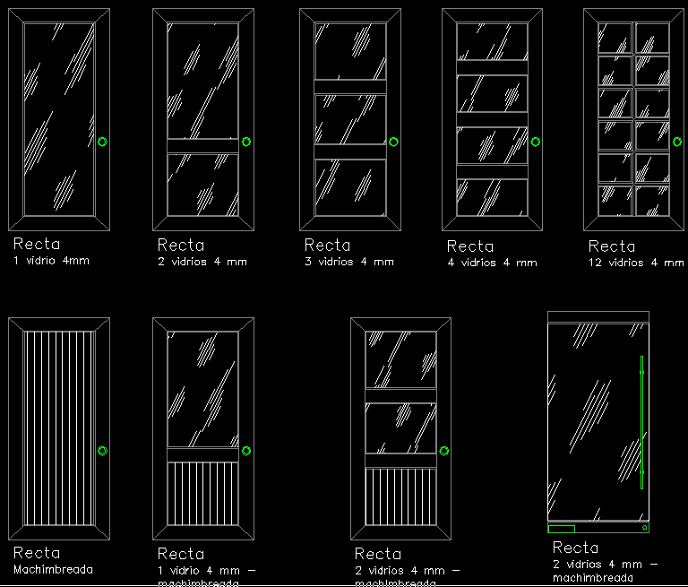 Aluminum Door AutoCAD DWG Drawing with Multiple Glass Panel Designs