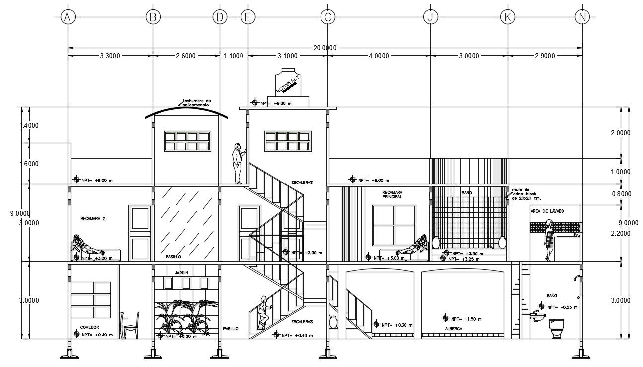 Bungalow section detail is given in this file. Download this 2d AutoCAD drawing file.