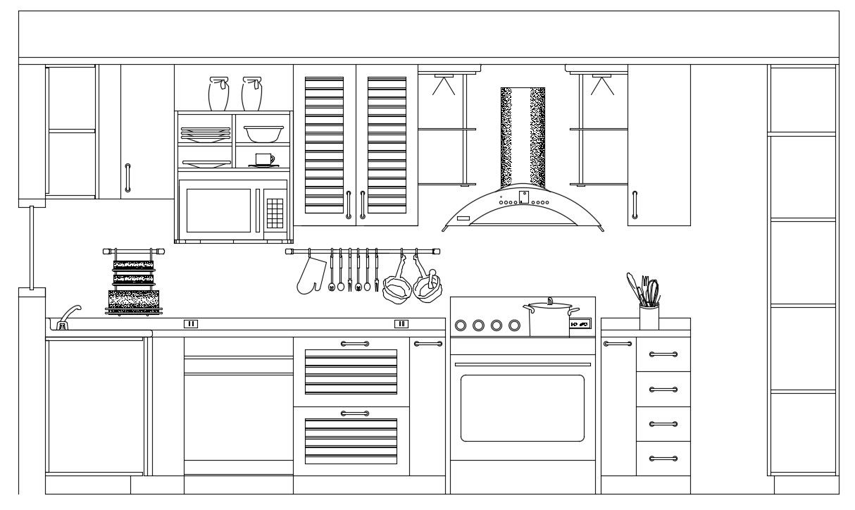Kitchen elevation drawing defined in this AutoCAD file. Download this 2d AutoCAD drawing file.