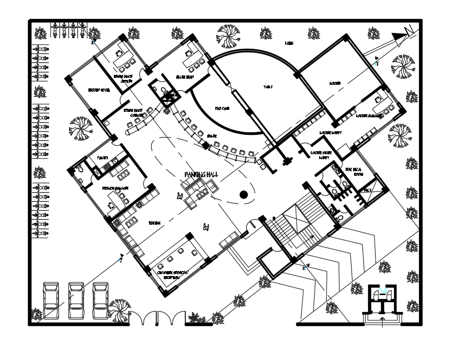 Bank floor plan detail drawing specified in this AutoCAD file. Download this 2d autocad drawing file.