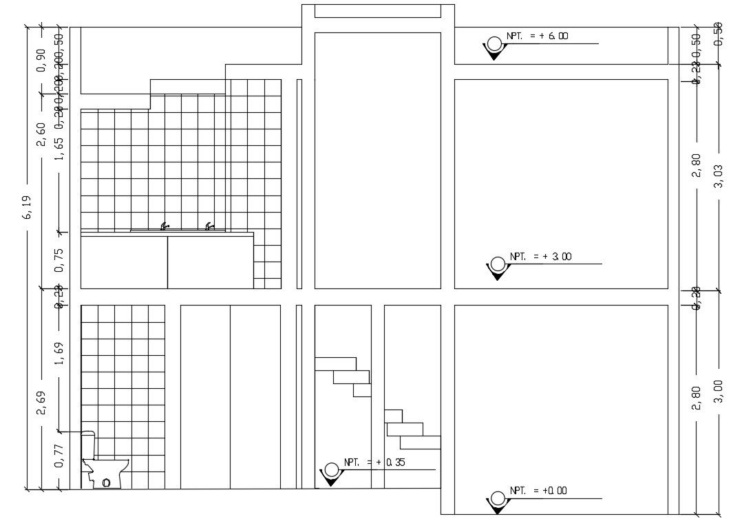Left side section view of 8x8m home building is given in this Autocad drawing file. This is G+1 house building. Living area, kitchen, dining hall, and common toilet is available in this ground floor. Master bedroom, kid’s room, guest room, family lounge and common toilet is available in the first floor. For more details download the Autocad file. Thank you for downloading the Autocad file and other CAD program files from our website.