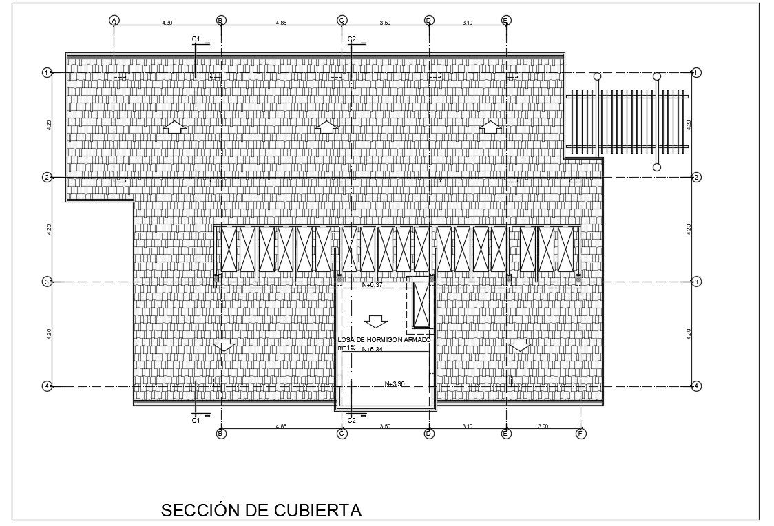 Roof plan of 15x13m restaurant building is given in this Autocad drawing file. Download now.
