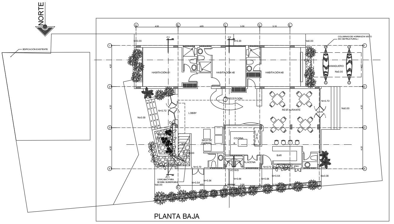 15x13m restaurant plan is given in this Autocad drawing file. This is G+1 restaurant building. Kitchen, lobby, reception, hotel rooms with attached toilet, restaurant and other details are mentioned in this drawing model. For more details download the Autocad file. Thank you for downloading the Autocad file and other CAD program files from our website.