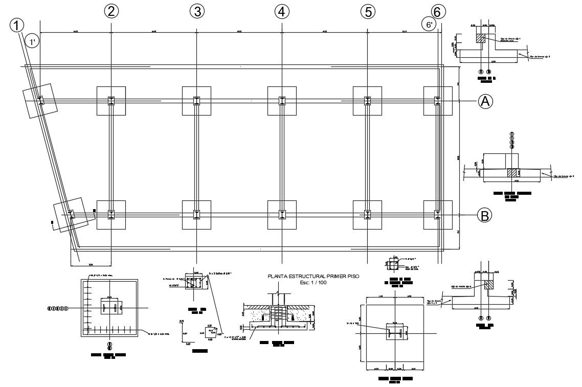 Foundation layout of 15x13m restaurant plan is given in this Autocad drawing file. Download now.