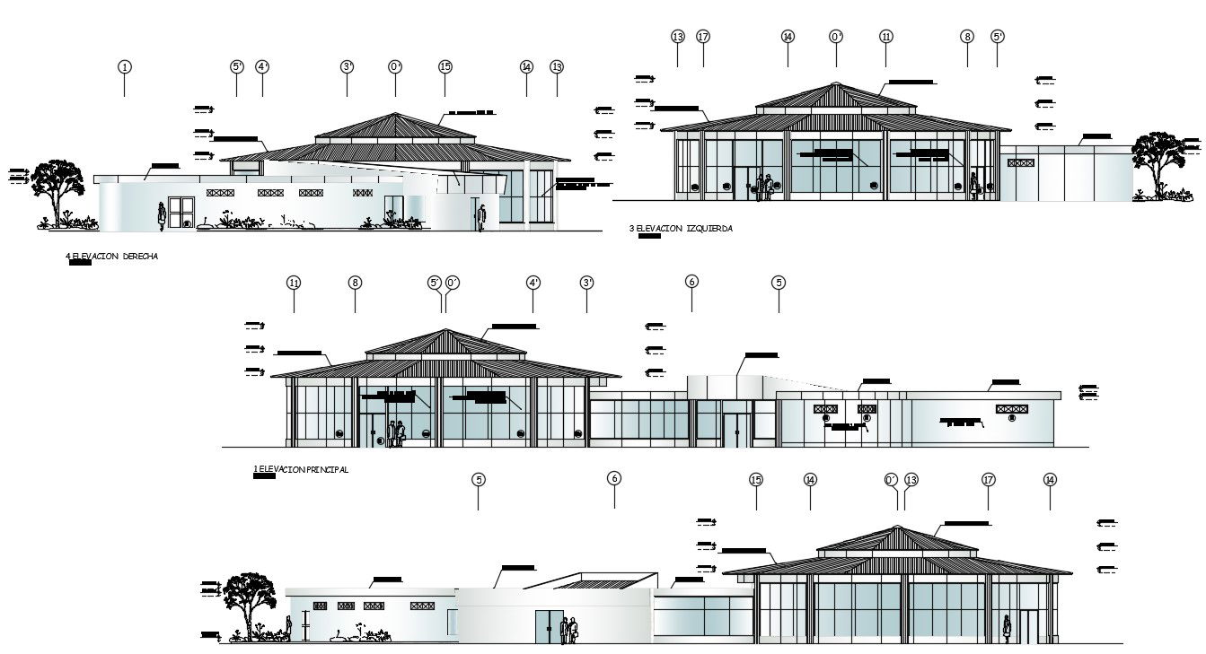 Left side view of Shopping mall building is given in the 2D Autocad drawing file. Download now.