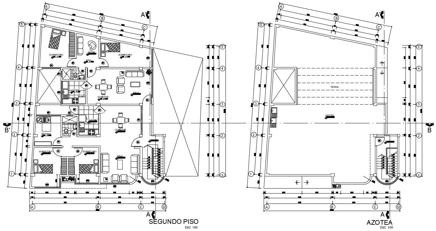 17x15m twin house second floor plan is given in this Autocad drawing file. Download now.