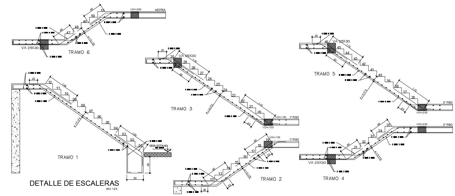 17x15m twin house plan of staircase section views are given in this Autocad drawing file. This is G+2 twin house building. Measurement and reinforcement details are given in this drawing model. For more details download the Autocad drawing file. Thank you for downloading the Autoad drawing file and other CAD program files from our cadbull website.
