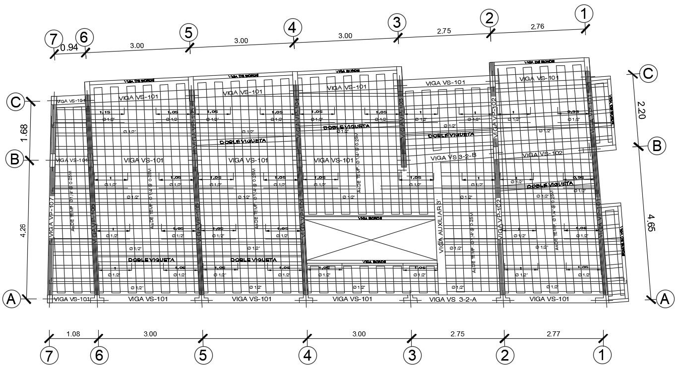 16x7m local commercial shop plan of first floor slab layout is given in this Autocad drawing file.
