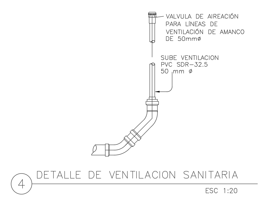 Sanitary ventilation detail has been given in this autocad drawing file. Upvate ventilation PVC sdr-32.5 50mm dia, aeration valve for 50mm? amanco ventilation lines, and other details are given in this model. For more details download the Autocad file. Thank you for downloading the Autocad file and other CAD program files from our website.
